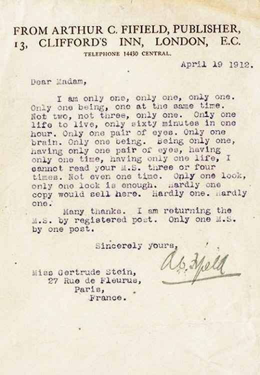 Rejection letter to Gertrude Stein